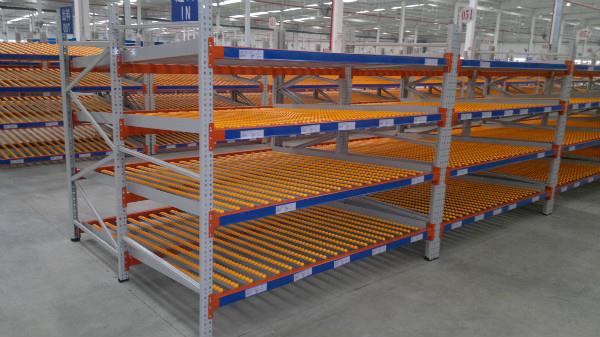 流利式貨架又稱滑移式貨架,采用輥輪鋁合金,鈑金等流利條,利用貨物臺架的自重,從一邊通道存貨,另一邊通道取貨實現先進先出,存儲方便,以及一次補貨多次取貨。流利架存儲效率高,適合大量貨物的短期存放和揀選。可配電子標簽,實現貨物的輕松管理,常用滑動容器有周轉箱,零件盒及紙箱,適合大量貨物和短期存放和揀選。