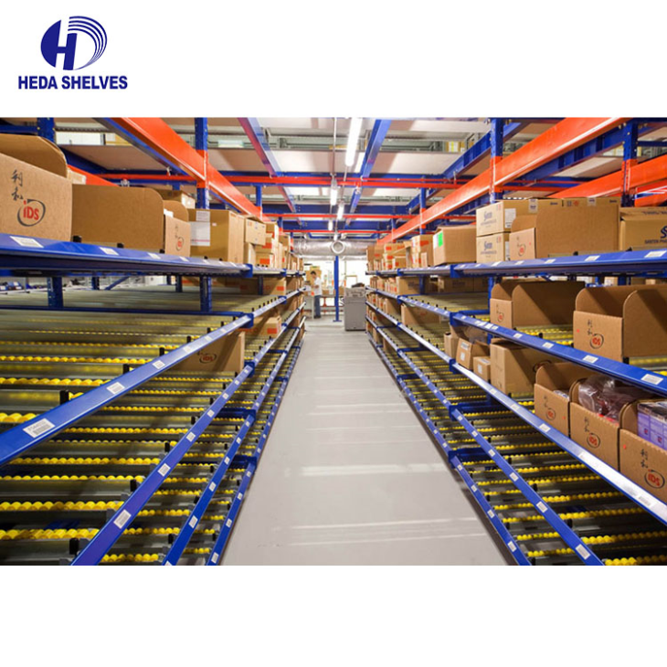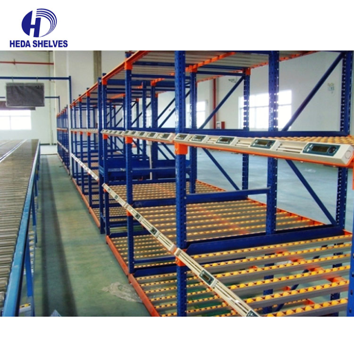 流利式倉儲貨架通常由中型橫梁式貨架演變而成,貨架每層前后橫梁之間設置滾輪式鋁合金或鈑金流力條,呈一定坡度(3o左右)放置,利用貨物自重,實現貨物的先進先出,存取方便,適于裝配線兩側的工序轉換、配送中心的揀選作業等場所,可配以電子標簽,實現貨物的信息化管理。單元貨架每層載重量通常在1000kg以內,貨架高度在2.5米以內。