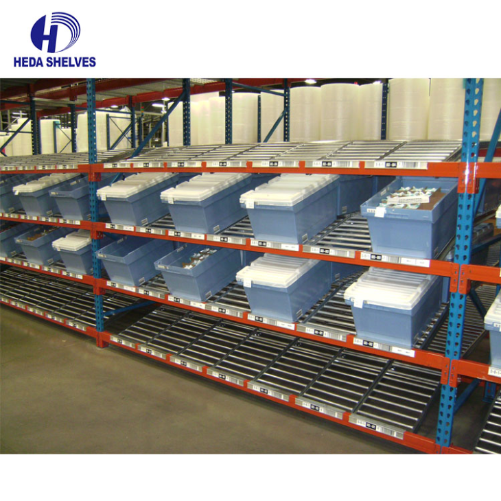 適用于生產線或裝配線上物料的存放,物料箱依靠自重沿滑輪下滑。廣泛用于電子、超市、醫藥等行業。